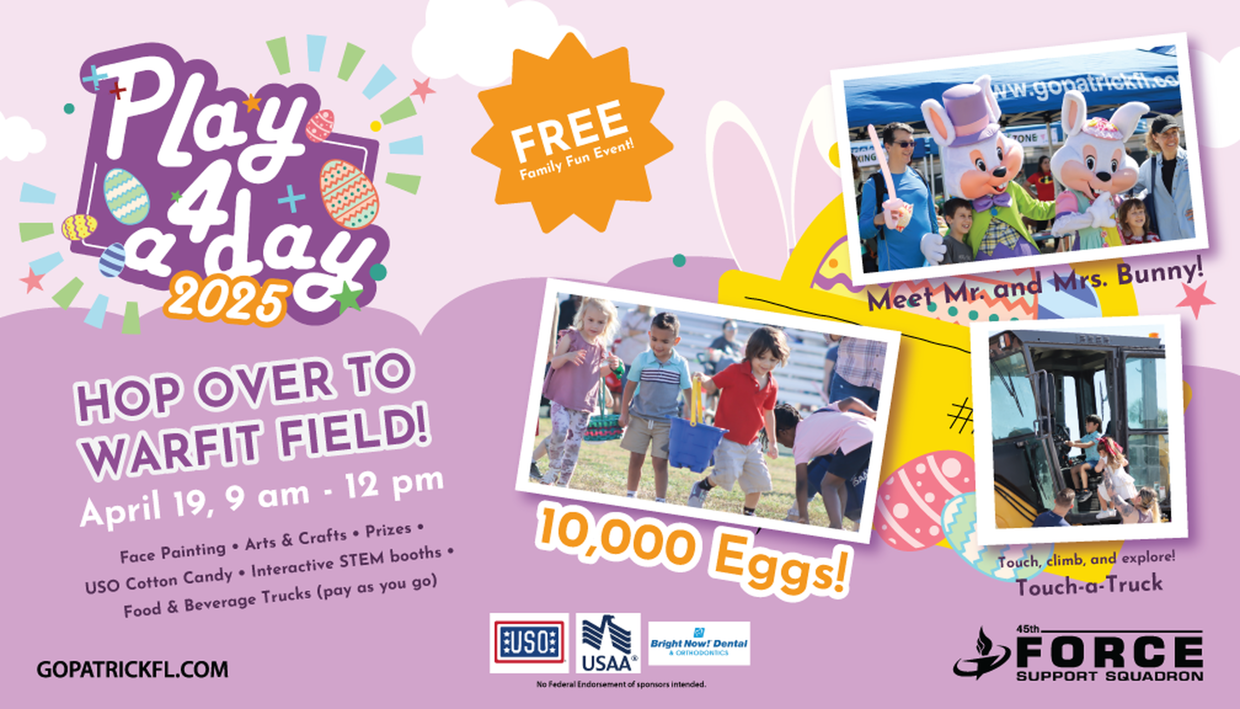 Join us at Warfit Field for a morning of fun!! Hunt for the over 10,000 eggs on the field with fabulous prizes for the people that find a golden egg! Tons of stem activities. Explore real-life vehicles at Touch a Truck. Enjoy food trucks! Games and fun for everyone!!